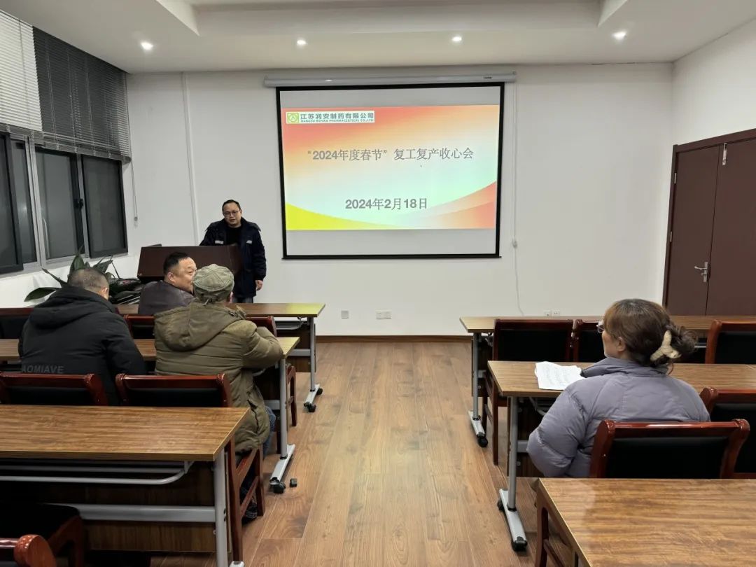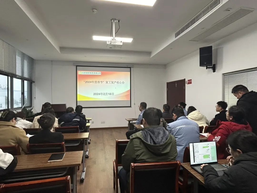 A spring work beginning, everything behavior first.The New Year began, all walks of life began busy. On February 18th, the first day of work after the Spring Festival, in order to promote the orderly resumption of work and production, Runan Pharmaceutical Safety and Environment Department organized all employees to hold the 2024 Spring Festival "resumption of work and Production Harvest Meeting" in the training room on the second floor of the company. At 4 PM, all the day shift staff attended the meeting on time, and the 6 night shift employees will be trained separately by the leader on duty at 7:50 PM, so as to achieve the principle of "full coverage of safety training, one employee does not fall behind".